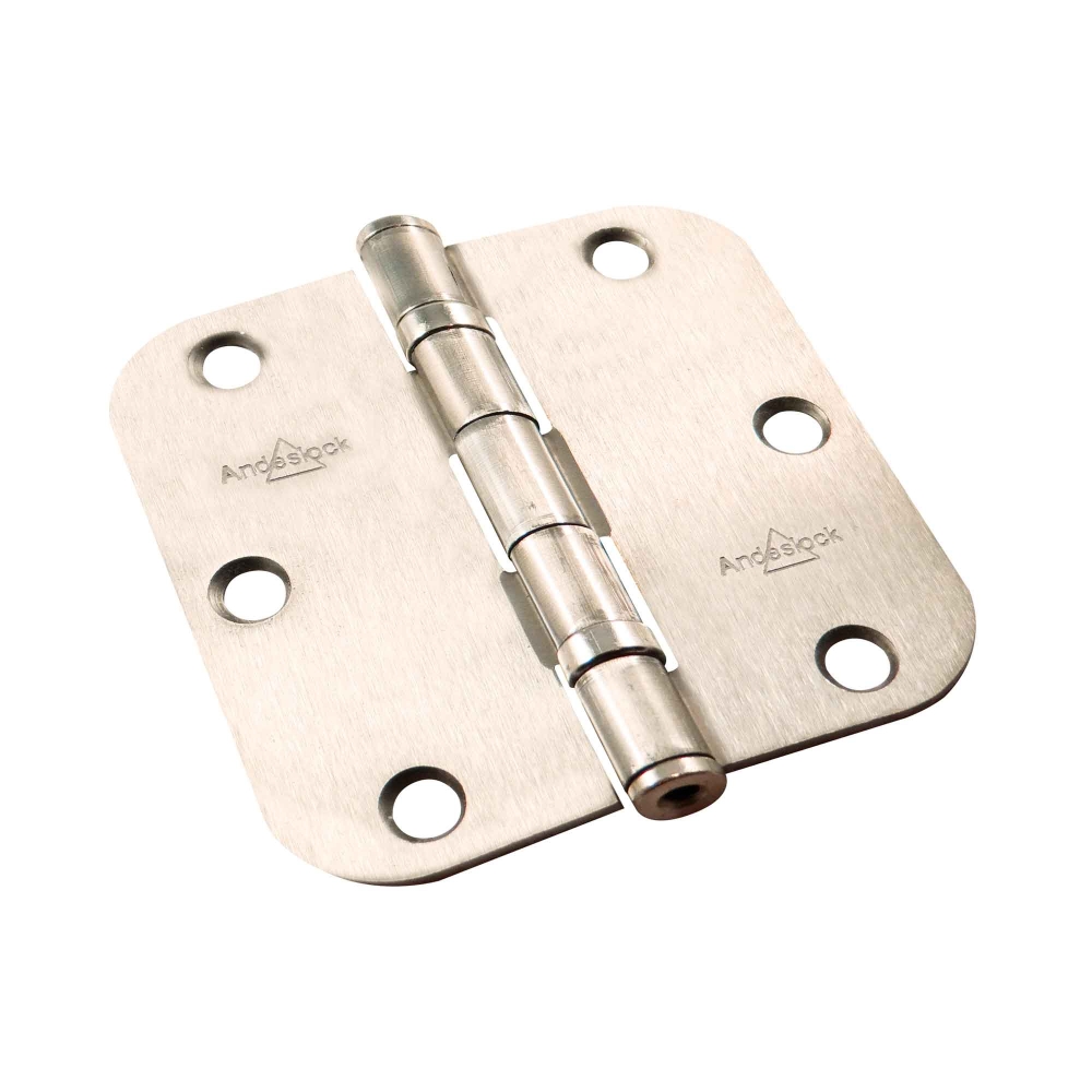 DescripciónDescripción - Bisagra 3,5"x3,5" Andeslock.- Con Rodamientos y esquina redondeada r5/8".- Acero Niquelado Satinado - CAJA CONTIENE 3 UNIDADES.- Incluye tornillos.
